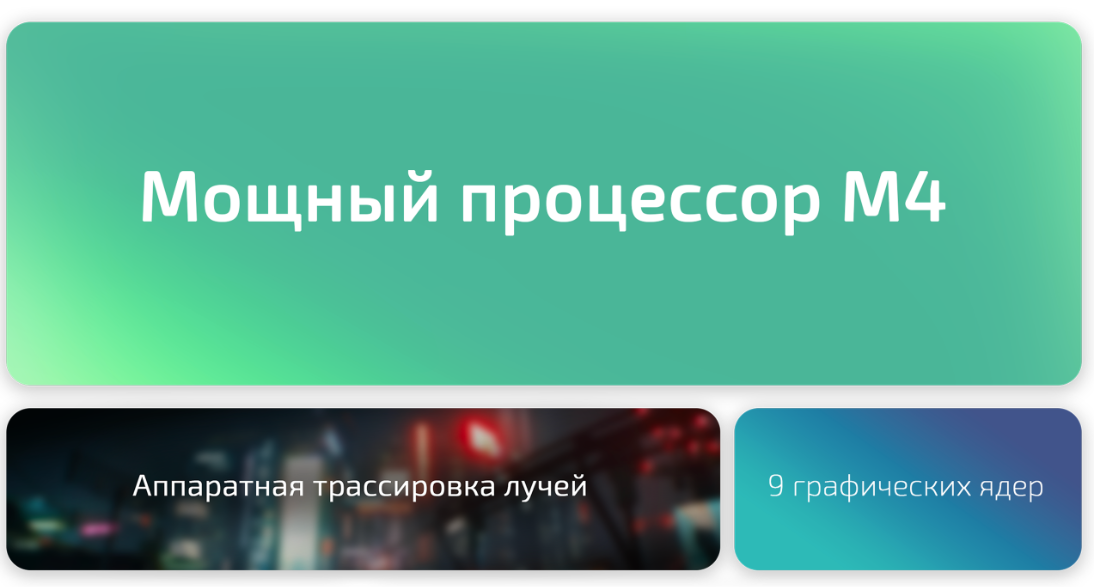 Главным нововведением iPad Air 2026 года стал чип Apple M4. Он создан по современному техпроцессу 3 нм второго поколения и обеспечивает высокую производительность при низком энергопотреблении. Процессор легко справляется с профессиональными приложениями, графическими редакторами, монтированием видео и ресурсоёмкими играми. Графическая система с 9-ю ядрами поддерживает аппаратное ускорение трассировки лучей, а 16 ядер Neural Engine ускоряют задачи, связанные с машинным обучением. Помимо этого, в сравнении с iPad Air 2025 года на базе M3 в полтора раза вырос объём объединённой оперативной памяти, который теперь составляет 12 ГБ, а её скорость обмена данными – 120 ГБ/с.