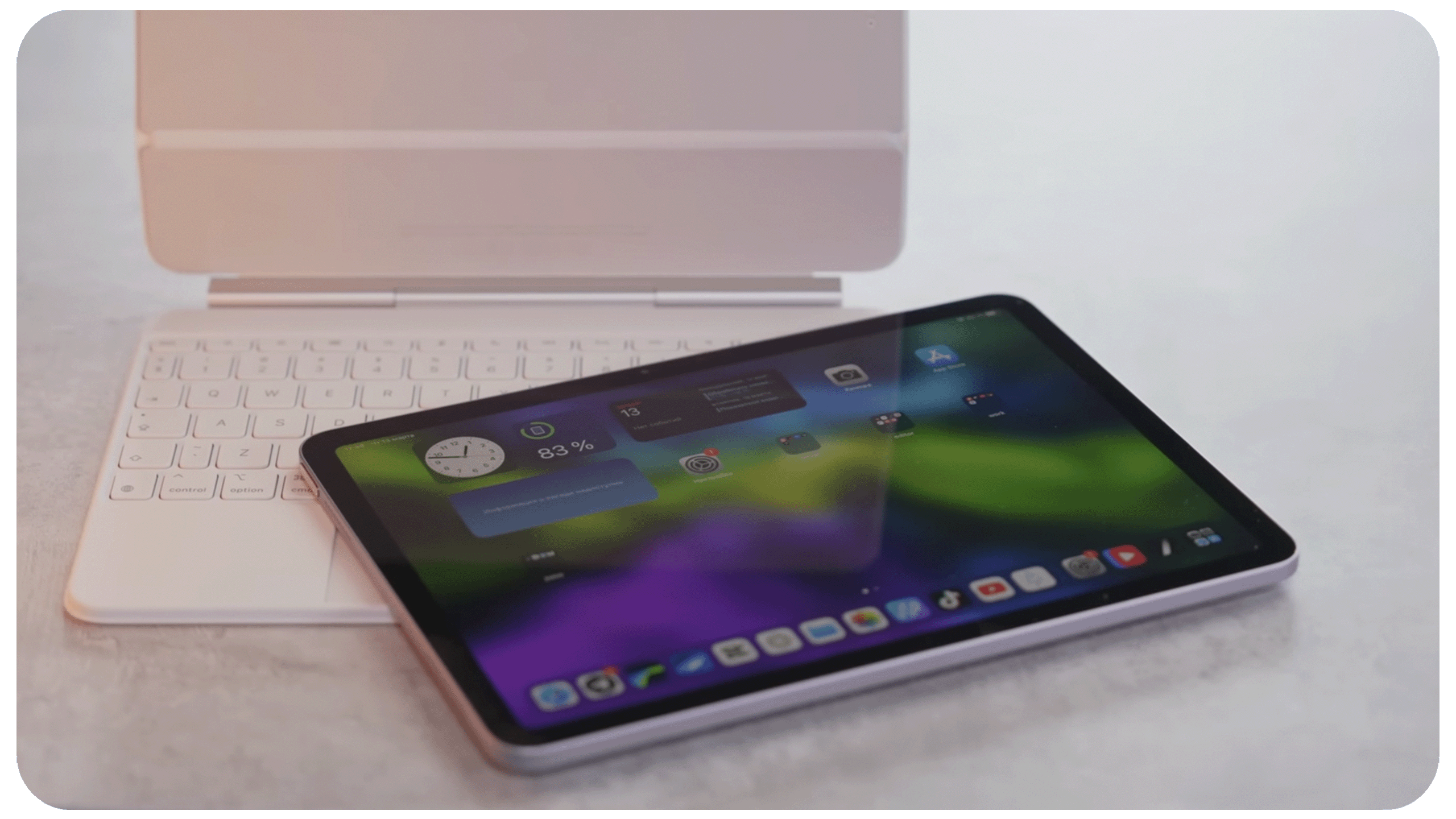 Дизайн планшета не изменился в сравнении с моделью предыдущего поколения. Корпус 13-дюймового iPad Air сделан из алюминия и радует толщиной в 6,1 мм. Кнопки управления, динамики и фронтальная камера расположены таким образом, чтобы устройством было удобно пользоваться в горизонтальной ориентации. Подобный формат идеально подходит для видеозвонков, просмотра видео и работы с клавиатурной обложкой. Несмотря на большой экран, iPad Air – лёгкий планшет. Он весит чуть больше 600 граммов, поэтому его удобно брать с собой в поездки и использовать на весу.
