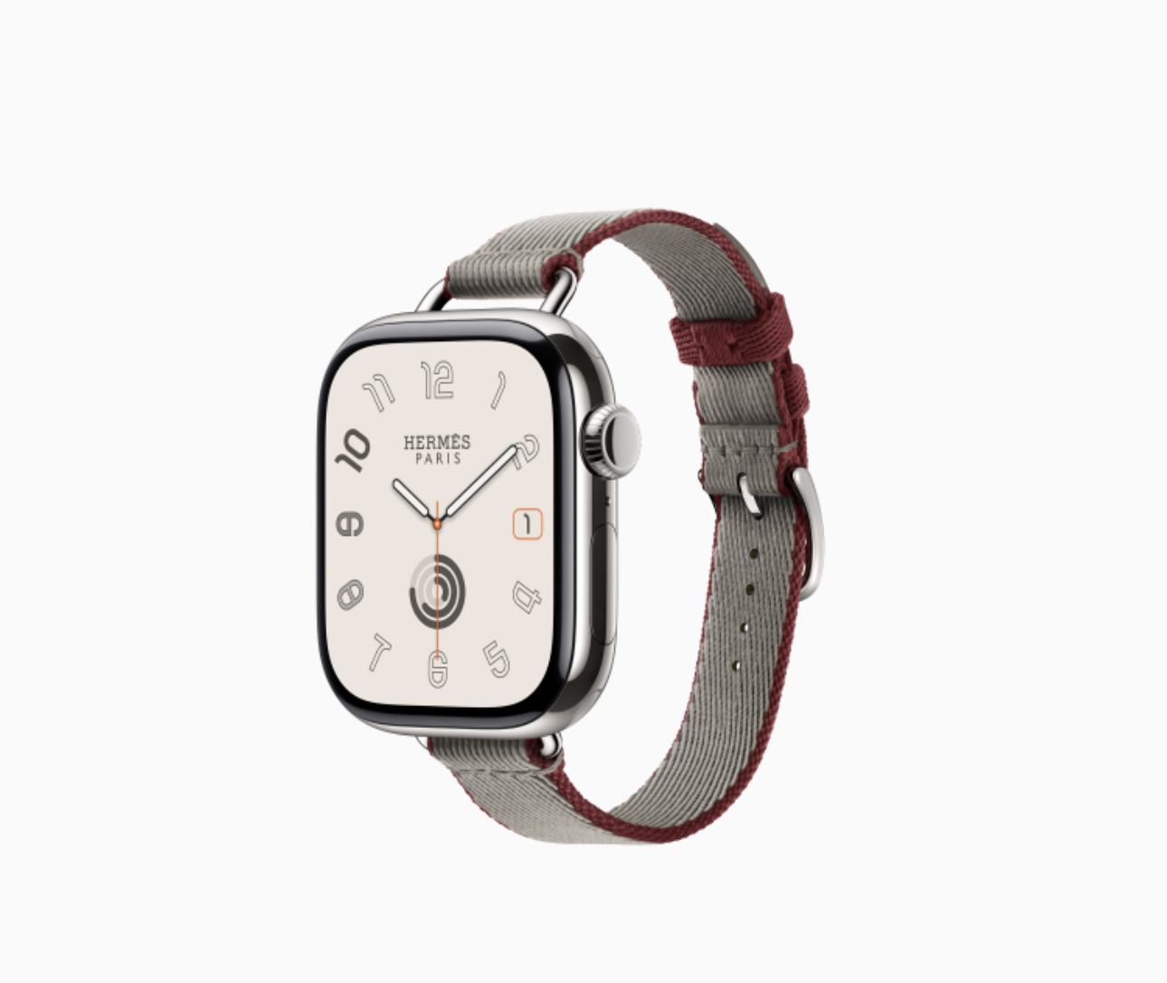 Apple Watch Hermès Series 11 42 mm Twill Jump Attelage Single Tour, Серо-бежевый с гранатовым краем
