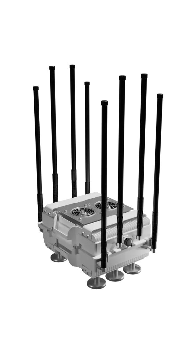 Оборудование для глушения дронов FPV противника. Очень популярная модель для всех видов легких и тяжелых автотранспортных средств из всех известных брендов подавителей и блокираторов БПЛА и FPV дронов. Устройство размещено в противоударном алюминиевом, стойком к погодным условиям корпусе с выносными антеннами.
