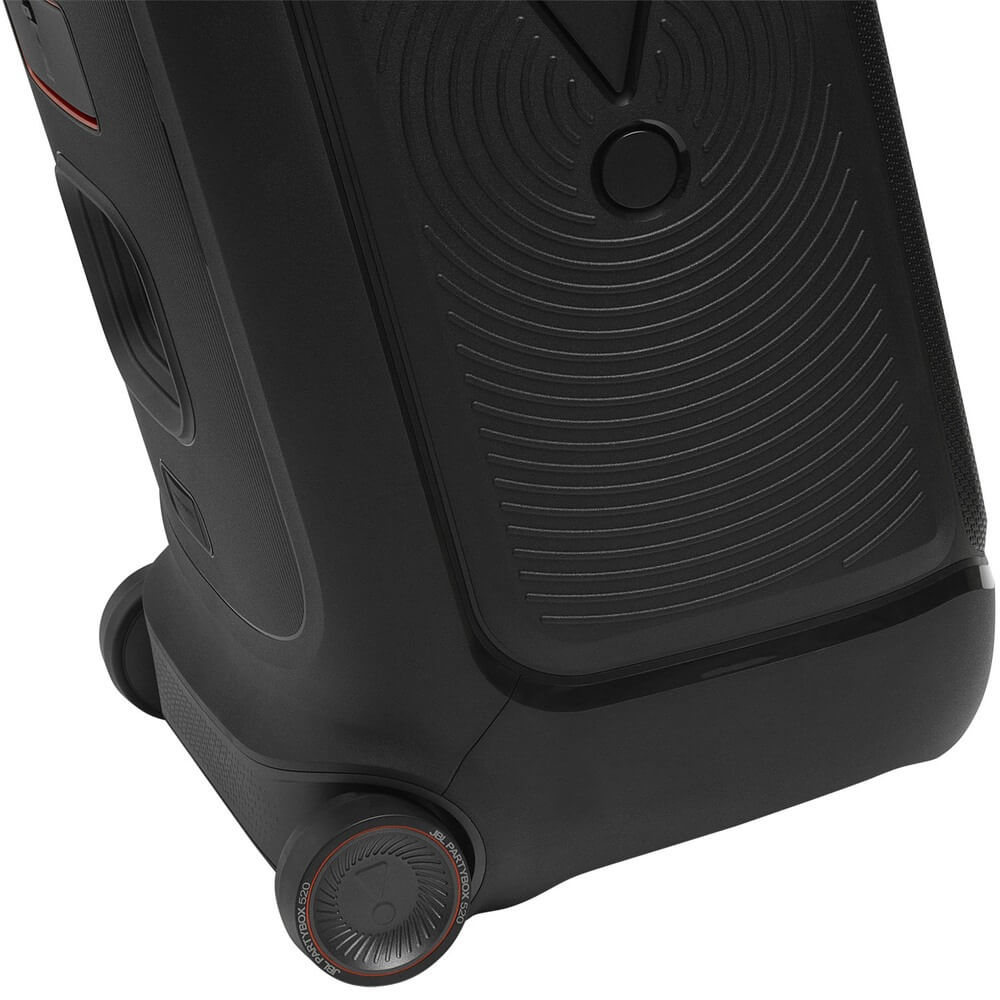 Производитель явно знал, для кого делал колонку. Защита IPX4 спасает от брызг и лёгкого дождя, а значит, вечеринку не придётся останавливать из-за стакана, перевёрнутого на колонку. Пластиковый корпус жёсткий, сбоку мягкие вставки, снизу колёса – таскать её можно хоть по траве, хоть по асфальту. Упала? Да хоть бы что. На таких вечеринках редко всё идёт идеально: то кто-то прольёт лимонад, то мяч залетит. JBL сделали PartyBox 520 максимально живучей, чтобы её было реально сложно вывести из строя.