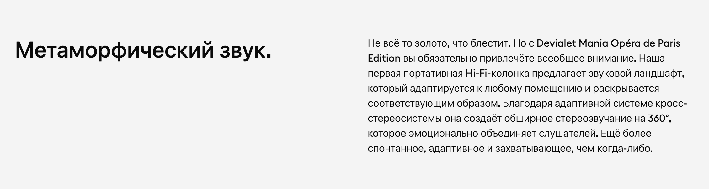 1x Девиалет Мания 1x Devialet Mania Station (беспроводная зарядная станция) 1x кабель питания USB-C и адаптер питания 1x руководство по эксплуатации 1 сумка для переноски