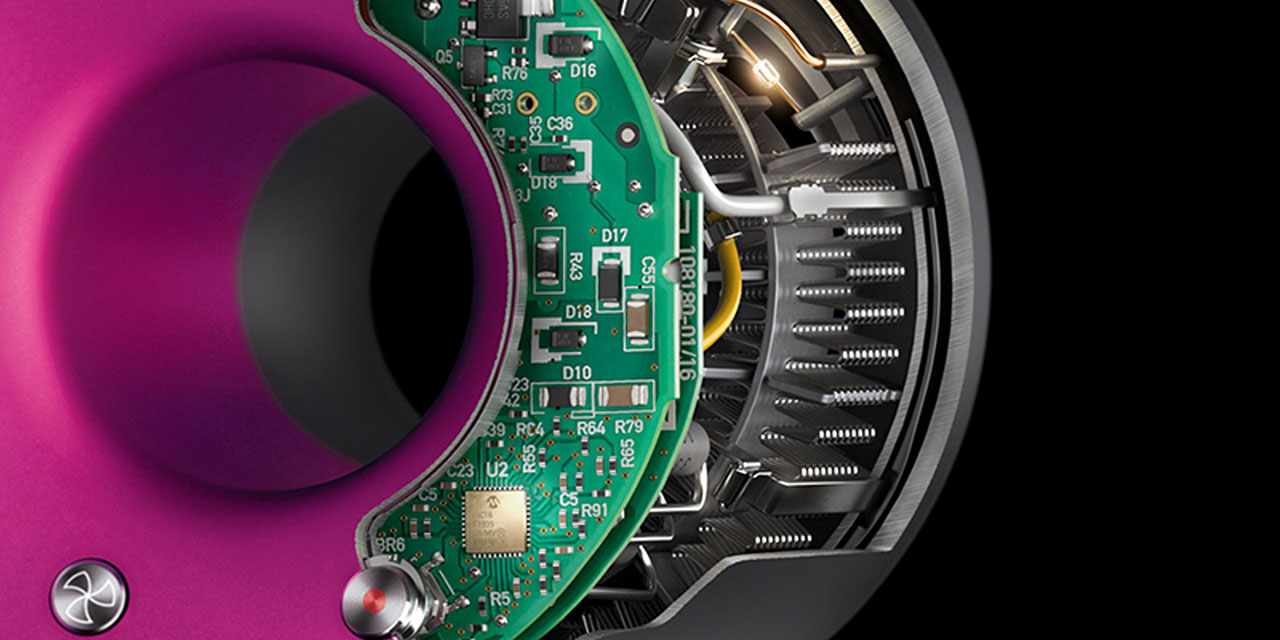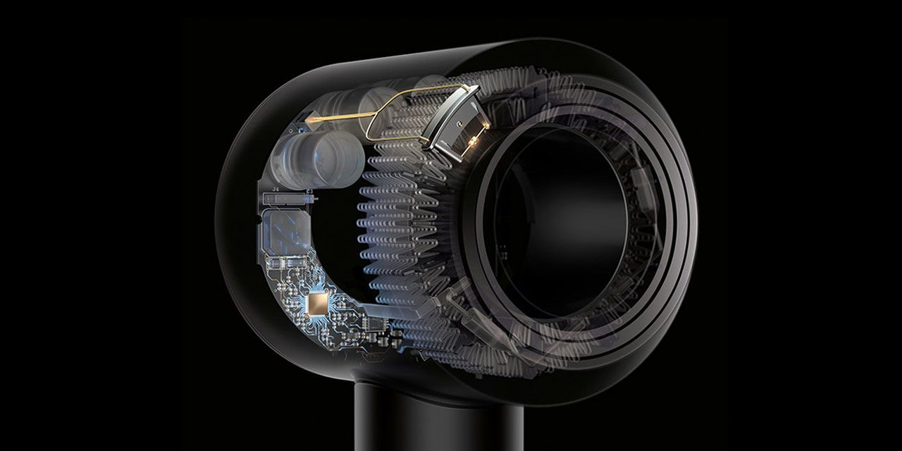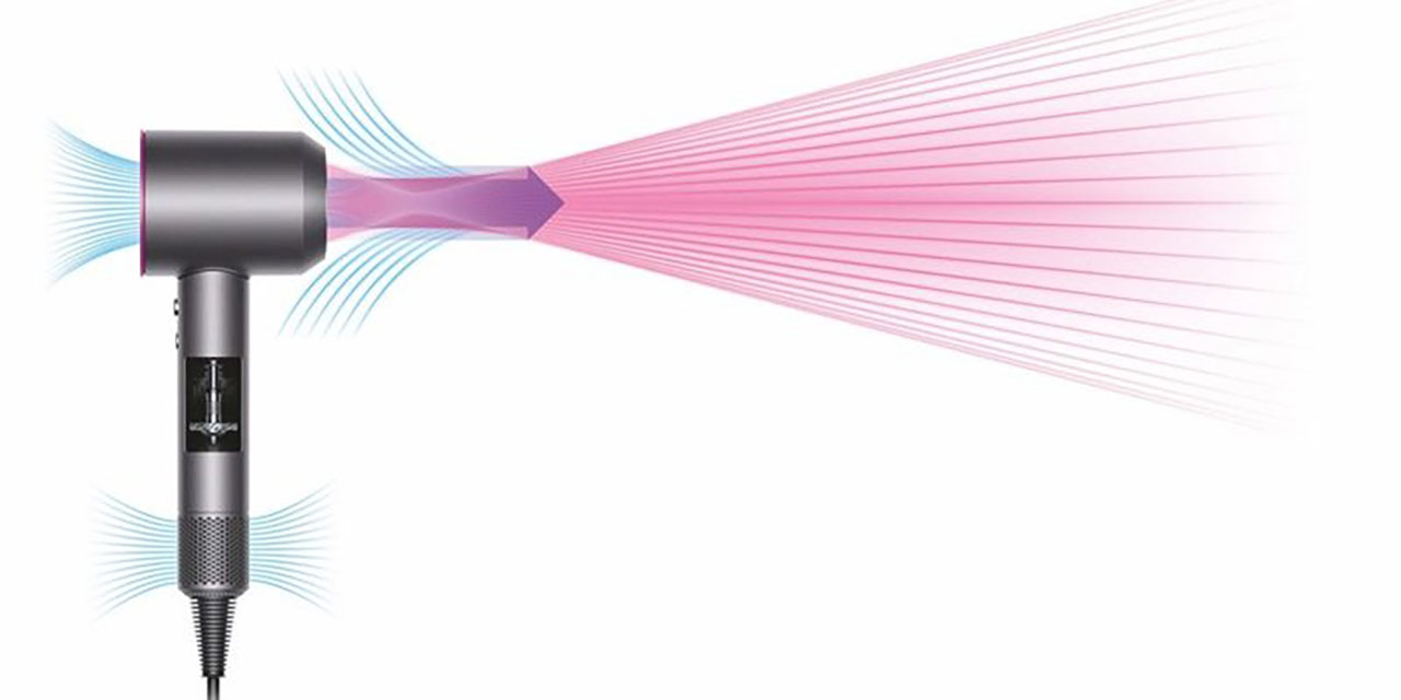 Supersonic – компактный фен, с мощным мотором. Внутри установлен двигатель V9, который вращается со скоростью до 110 тысяч оборотов в минуту. Вместе с технологией Air Multiplier он создает точную высокоскоростную струю воздуха для быстрой и аккуратной укладки.