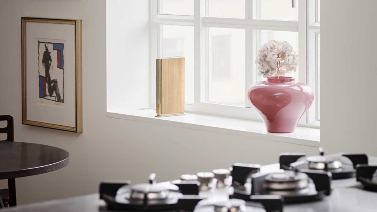 Имеющая ультратонкий профиль с вдохновленным книгой дизайном и площадь основания лишь 6.7 см, Beosound Emerge – изящное, универсальное дополнение к любому интерьеру: независимо от того, установлена ли она на видном месте или незаметно спрятана на полке.