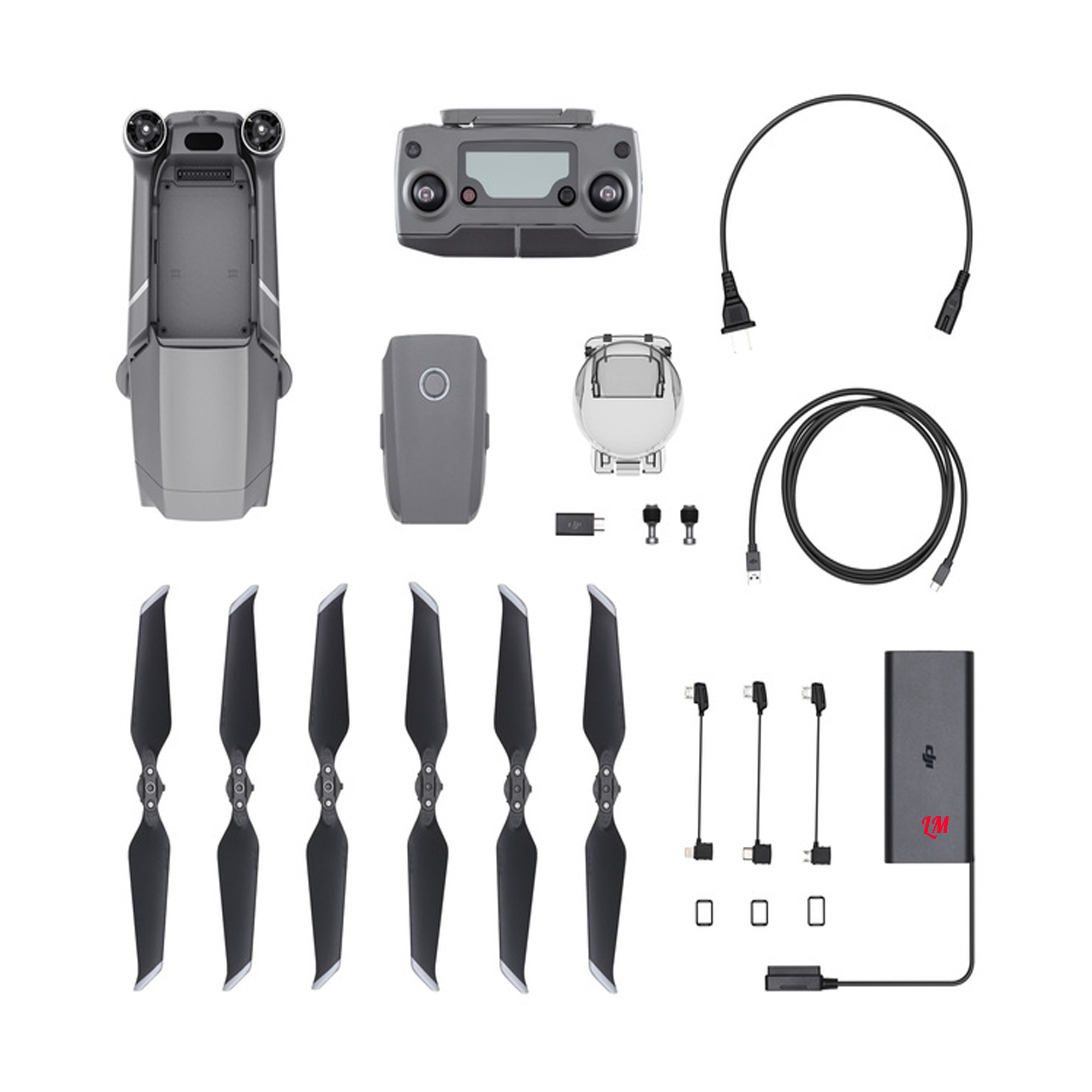 Квадрокоптер, сумка\чехол, кабель питания, кабель USB-C, зарядное устройство, пульт дистанционного управления, кабели для пульта (с разъёмами Lightning, Micro USB и USB-C), 3 аккумулятора Intelligent Flight, концентратор для зарядки аккумуляторов, 4 пары запасных пропеллеров, 1 пара запасных ручек управления, защитная насадка для стабилизатора, набор оптических фильтров (ND16/64/256), USB-адаптер, инструкция, Пульт управления