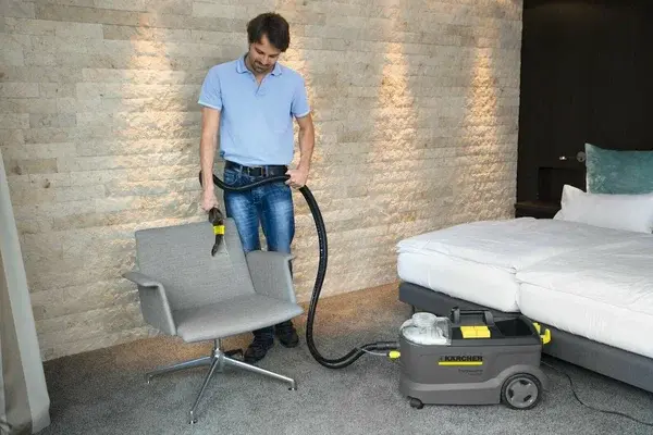 Пылесос Karcher Puzzi 10/1, (1.100-130.0)Моющий пылесос Kärcher Puzzi 10/1, укомплектованный насадкой для пола и насадкой для мягкой мебели, прекрасно подходит для эффективной гигиенической уборки в помещениях малой и средней площади. Этот моющий пылесос с давлением разбрызгивания 1 бар бережно и тщательно очищает текстильные поверхности, в частности ковры и обивку мягкой мебели. Узкая насадка для пола с шарниром обеспечивает эффективную уборку даже в тесных и заставленных мебелью помещениях. Аппарат снабжен крюком для подвешивания кабеля и фиксатором для закрепления рукоятки и удлинительной трубки на корпусе.