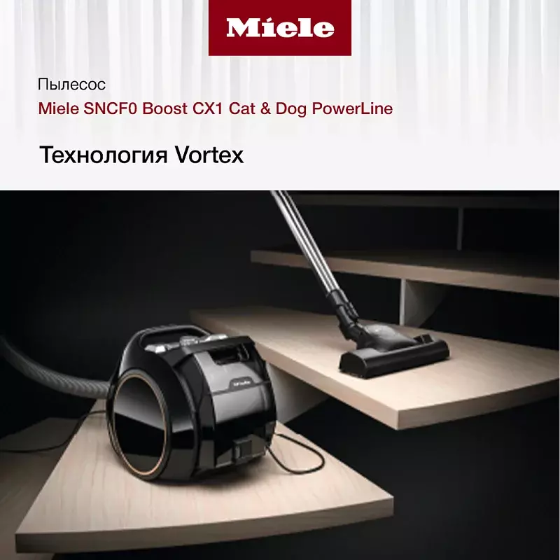 Пылесос Miele SNCF0 Boost CX1 Cat & Dog PowerLine придуман специально для владельцев домашних питомцев. Он отлично справляется с шерстью, которая неизбежно остается на мебели, в углах комнат, на полу и коврах. Компактная модель черного цвета впишется, пожалуй, в любой интерьер и не займет много места. Длина кабеля прибора — 6,5 м, а радиус действия — 10 м. Этого хватит, чтобы спокойно убраться в комнате среднего размера. Объем прозрачного контейнера для сбора пыли небольшой, 1 литр, но благодаря функции Click2open / Twist2open вынуть и поставить после очистки на место его совсем нетрудно.