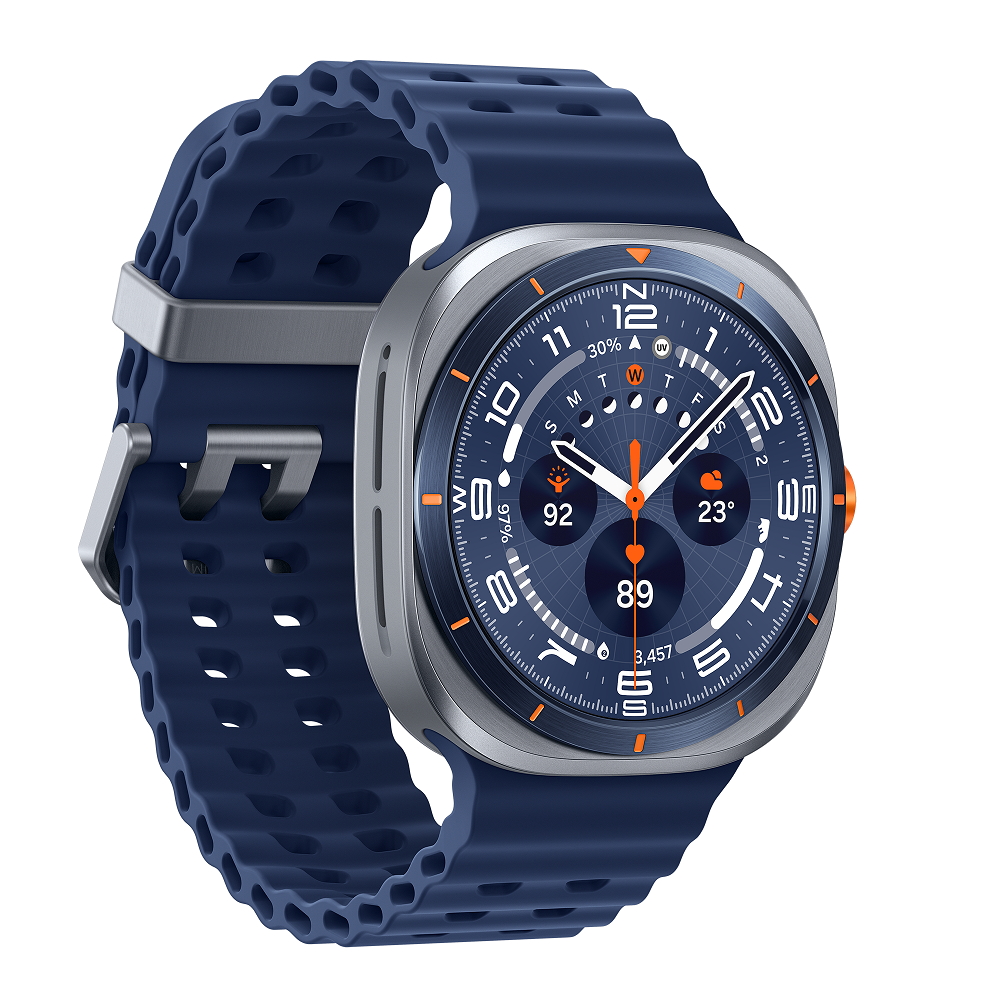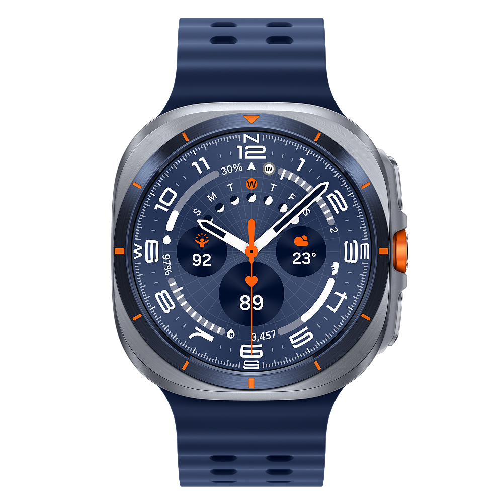 Galaxy Watch Ultra доступны в цветах Серый Титан, Черный Титан, Белый Титан, а теперь и в цвете Синий Титан. Новый оттенок добавляет яркую ноту в гамму цветовых решений, каждое из которых впечатляет. Разнообразные ремешки идеально сочетаются с корпусом, каждый из четырех цветов отражает смелый дух Galaxy Watch Ultra.