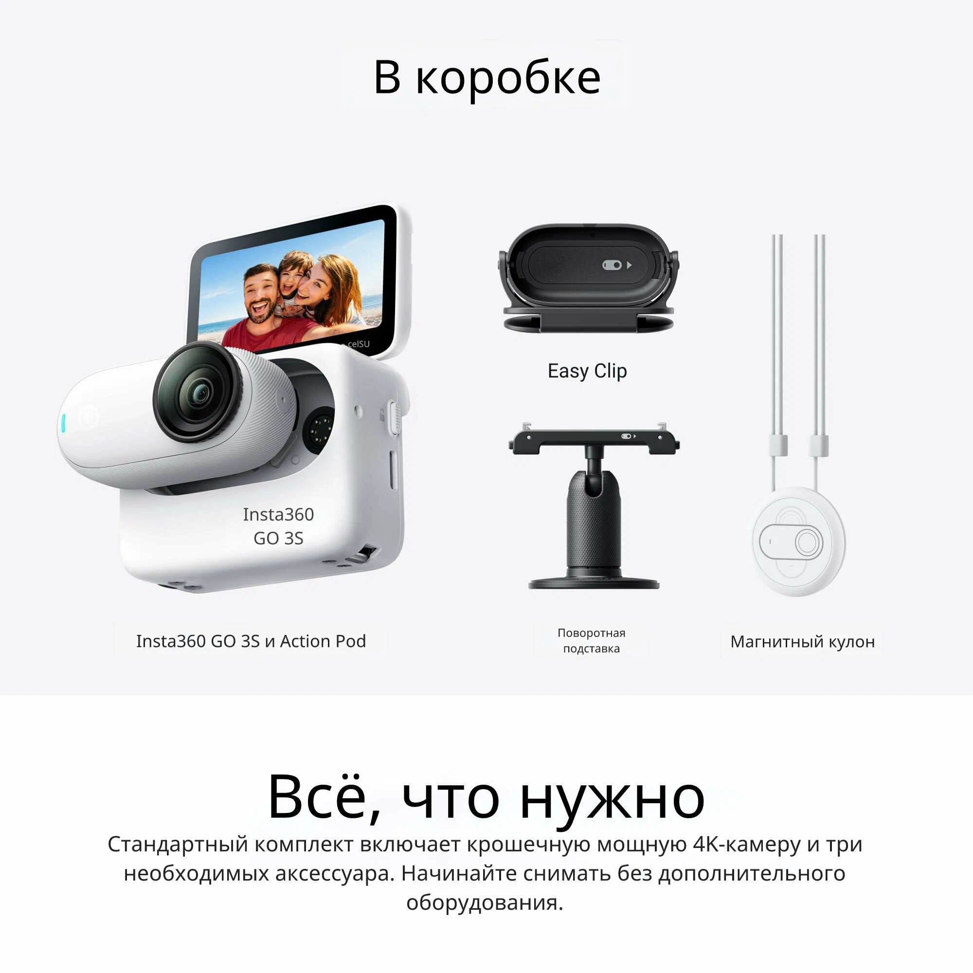 Спортивная камера Insta360 Go 3S, 64Гб, белый