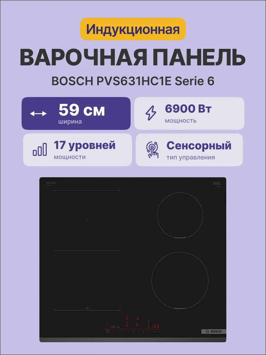 Варочная панель Bosch PVS631HC1E снабжена блокиратором, который не позволяет детям включить плиту или изменить настройки. Встроенный сенсор остаточного тепла покажет, когда к поверхности можно прикасаться без риска получить ожог.