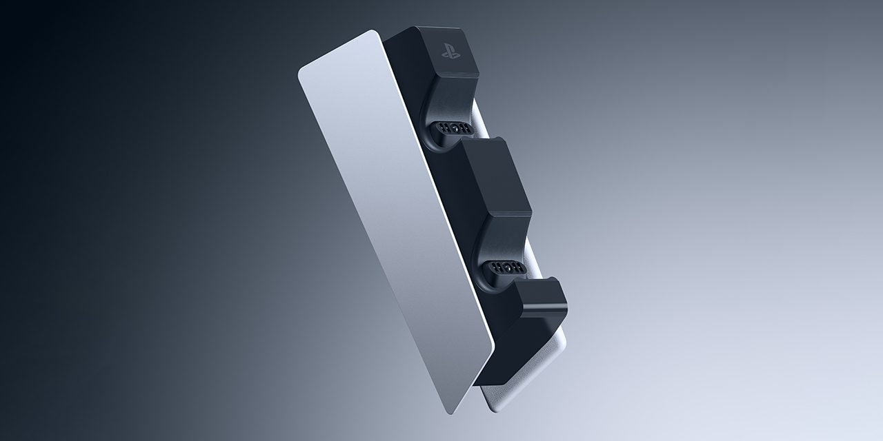 Удобная док-станция, рассчитанная на два геймпада DualSense. Дизайн аксессуара выполнена в том же стиле, что и PlayStation 5. Для подключения геймпадов не используются разъёмы Type-C, достаточно просто вставить контроллер. Аксессуар особенно удобен в связке с двумя геймпадами, поскольку необходимость следить за зарядом каждого из них отдельно пропадает.